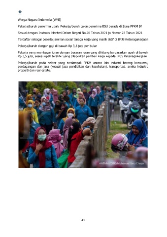 Pekerja/buruh penerima upah. Pekerja/buruh calon penerima BSU berada di Zona PPKM IV