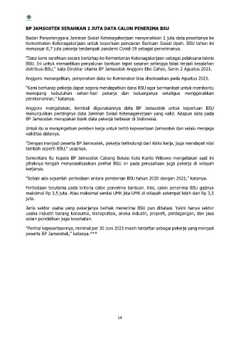 distribusi BSU," kata Direktur Utama BP Jamsostek Anggoro Eko Cahyo, Senin 2 Agustus 2021.