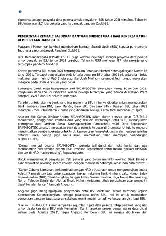 dipercaya sebagai penyedia data pekerja untuk penyaluran BSU tahun 2021 tersebut. Tahun ini