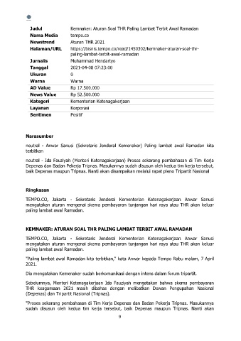 neutral - Anwar Sanusi (Sekretaris Jenderal Kemenaker) Paling lambat awal Ramadan kita