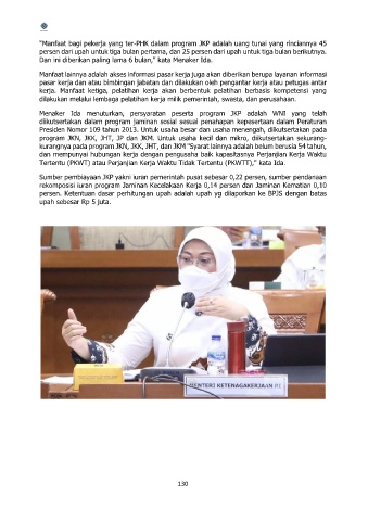 Menaker Ida menuturkan, persyaratan peserta program JKP adalah WNI yang telah