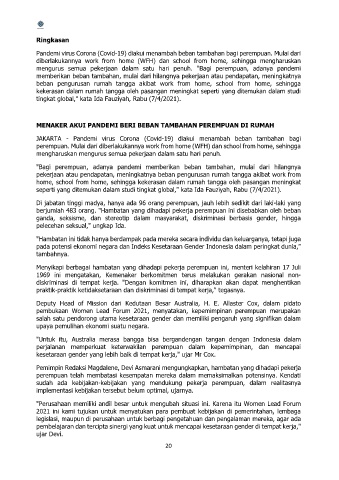 perempuan. Mulai dari diberlakukannya work from home (WFH) dan school from home, sehingga