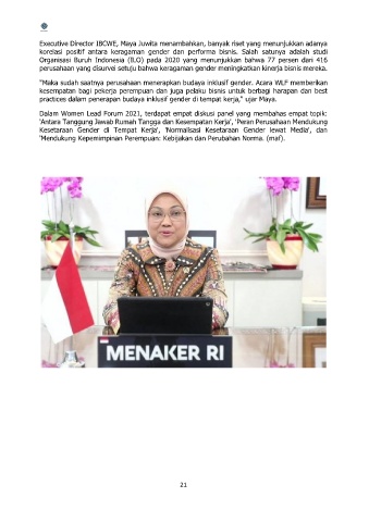 "Maka sudah saatnya perusahaan menerapkan budaya inklusif gender. Acara WLF memberikan