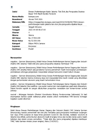 (Kadin) DKI Jakarta) Tidak elok jika (para pengusaha) dipaksa membayar THR