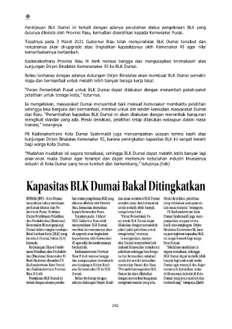 dan Riau. "Penambahan kapasitas BLK Dumai ini akan dilakukan dengan merombak bangunan