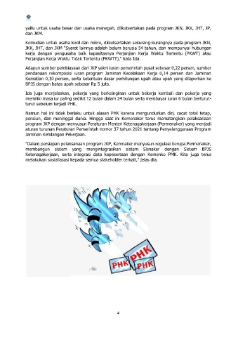 JKK, JHT, dan JKM "Syarat lainnya adalah belum berusia 54 tahun, dan mempunyai hubungan