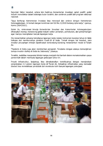 Selain itu, sinkronisasi kinerja Kementerian Investasi dan Kementerian Ketenagakerjaan
