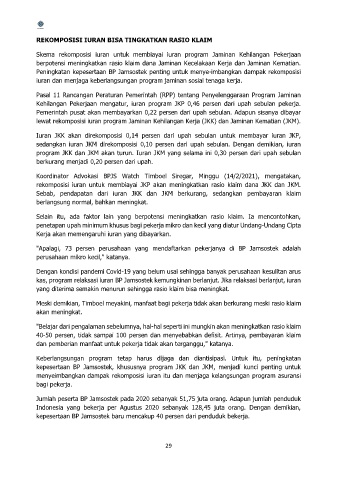 rekomposisi iuran untuk membiayai JKP akan meningkatkan rasio klaim dana JKK dan JKM.