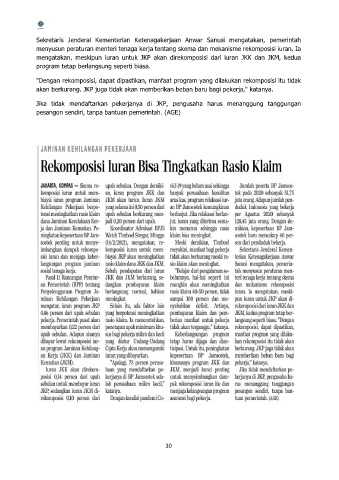 mengatakan, meskipun iuran untuk JKP akan direkomposisi dari iuran JKK dan JKM, kedua