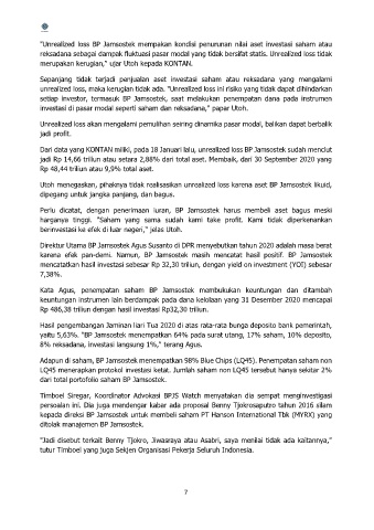 Utoh menegaskan, pihaknya tidak realisasikan unrealized loss karena aset BP Jamsostek likuid,