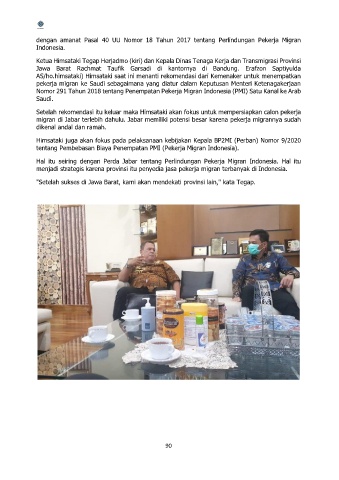 dengan amanat Pasal 40 UU Nomor 18 Tahun 2017 tentang Perlindungan Pekerja Migran