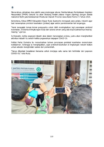 kedisiplinan. Sehingga ia mengingatkan, agar protokol kesehatan di lingkungan industri bukan