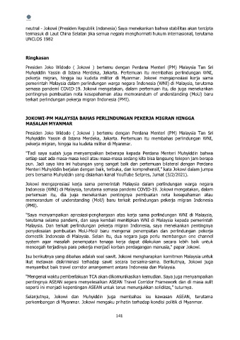 pekerja migran, hingga isu kudeta militer di Myanmar. Jokowi mengapresiasi kerja sama