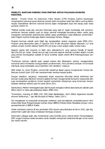 Bantuan Subsidi Upah 2020 dan mendiseminasi hasilnya kepada publik.
