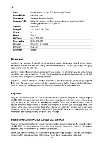 Judul Dosen Swasta Curhat, BLT Subsidi Gaji Disunat