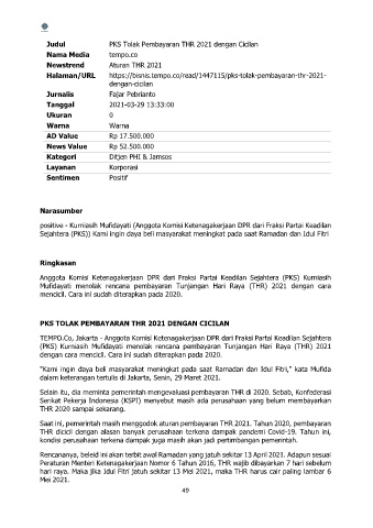 Judul PKS Tolak Pembayaran THR 2021 dengan Cicilan