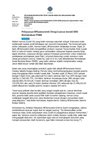 Title PELAYANAN BPJAMSOSTEK TETAP LANCAR MESKI DKI BERLAKUKAN PSBB
