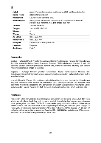 Judul Alasan Pemerintah pangkas cuti bersama 2021 jadi tinggal dua hari
