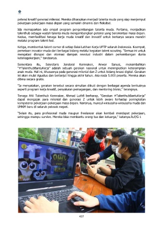 potensi kreatif generasi milenial. Mereka diharapkan menjadi talenta muda yang siap menjemput