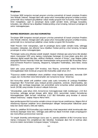 pemerintah terus memperkuat pelatihan vokasi melalui program BLK Komunitas. Wakil Presiden