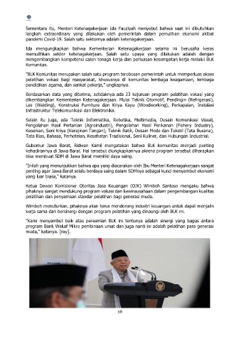 Gubernur Jawa Barat, Ridwan Kamil mengatakan bahwa BLK komunitas menjadi penting