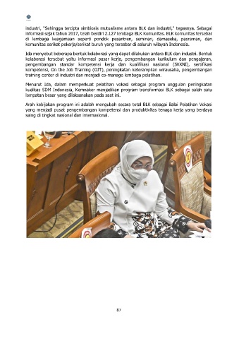 industri, "Sehingga tercipta simbiosis mutualisme antara BLK dan industri," tegasnya. Sebagai
