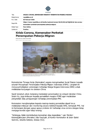 Title KRISIS CORONA, KEMENAKER PERKETAT PENEMPATAN PEKERJA MIGRAN