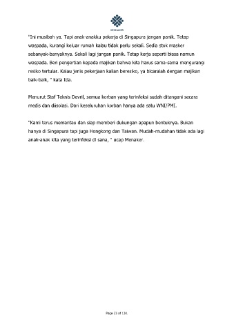 "Ini musibah ya. Tapi anak-anakku pekerja di Singapura jangan panik. Tetap
