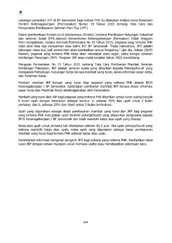 Kehilangan Pekerjaan (JKP). Program JKP akan mulai berjalan tahun 2022 mendatang.