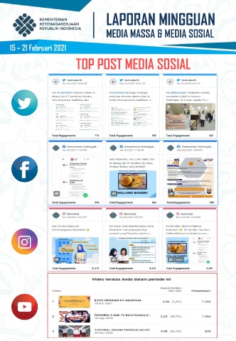 LAPORAN MINGGUAN MEDIA MASSA & MEDIA SOSIAL 15 – 21 Februari 2021 TOP POST MEDIA SOSIAL