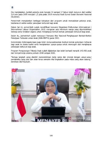 Dia menjelaskan, jumlah pekerja anak berusia 10 sampai 17 tahun telah menurun dari sekitar
