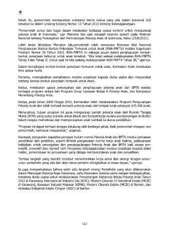 pekerja anak di Indonesia," ujar Menaker Ida saat menjadi keynote speech pada Webinar