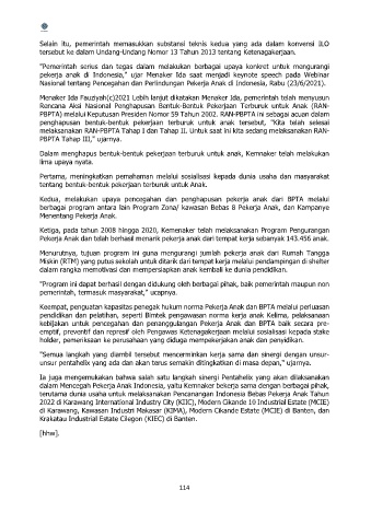pekerja anak di Indonesia," ujar Menaker Ida saat menjadi keynote speech pada Webinar