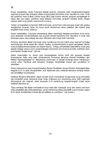 G-20 dalam memfasilitasi transisi dari pendidikan ke pekerjaan," ujar Anwar.( .