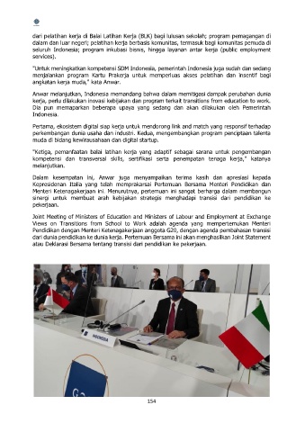 dari dunia pendidikan ke dunia kerja. Pertemuan Bersama ini akan menghasilkan Joint Statement