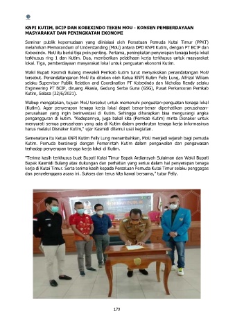 melahirkan Memorandum of Understanding (MoU) antara DPD KNPI Kutim, dengan PT BCIP dan