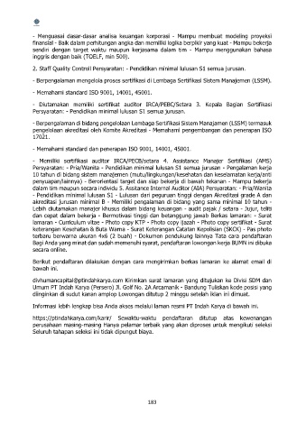2. Staff Quality Controll Persyaratan: - Pendidikan minimal lulusan S1 semua jurusan.