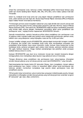 Migran Indonesia (PMI). Oleh karena itu, BPJAMSOSTEK selalu berupaya memberikan pelayanan