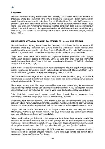 pendidikan yang berkualitas," kata Luhut saat bertandang ke Kawasan PT IWIP di Halmahera