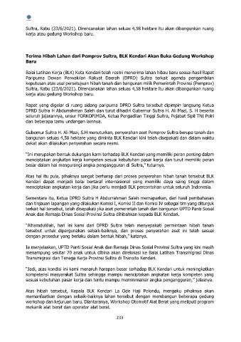 Balai Latihan Kerja (BLK) Kota Kendari telah resmi menerima lahan hibau baru sesuai hasil Rapat