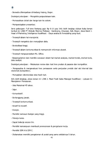 Info lebih lengkap, akses laman ini: LINK 2. Meat Fresh Sales Manager Kualifikasi: - Lulusan S1