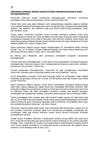 peningkatan kerja sama ketenagakerjaan dengan Amerika Serikat (AS).
