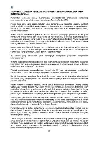 peningkatan kerja sama ketenagakerjaan dengan Amerika Serikat (AS).