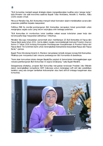 Menaker Ida juga menyatakan pemerintah akan membangun 25 BLK Komunitas di Papua dan