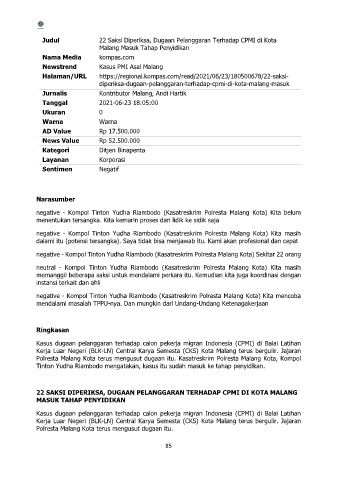Judul 22 Saksi Diperiksa, Dugaan Pelanggaran Terhadap CPMI di Kota