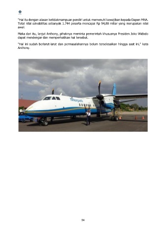 "Hal itu dengan alasan ketidakmampuan pendiri untuk memenuhi kewajiban kepada Dapen MNA.