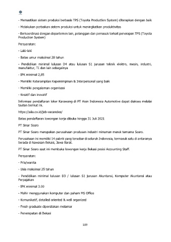 - Memastikan sistem produksi berbasis TPS (Toyota Production System) diterapkan dengan baik