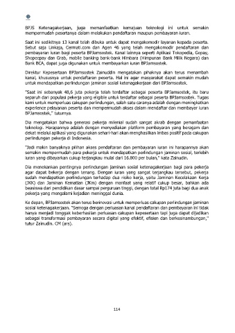 sosial ketenagakerjaan. "Semoga dengan perluasan kanal pendaftaran dan pembayaran ini tidak
