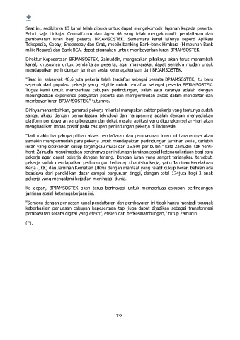 pembayaran iuran bagi peserta BPJAMSOSTEK. Sementara kanal lainnya seperti Aplikasi