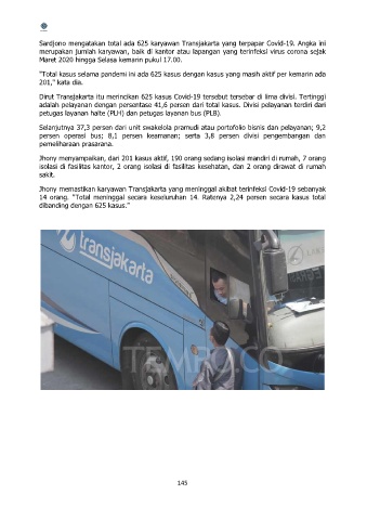 Sardjono mengatakan total ada 625 karyawan Transjakarta yang terpapar Covid-19. Angka ini